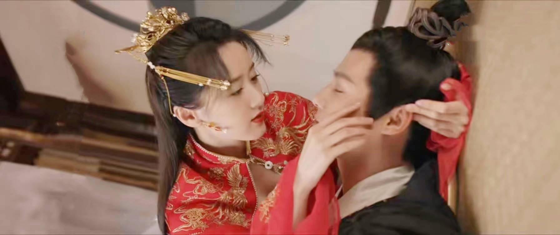 洞房吻,两位主演吻得很用力也很投入,让我等看追剧,直呼“磕到了”!