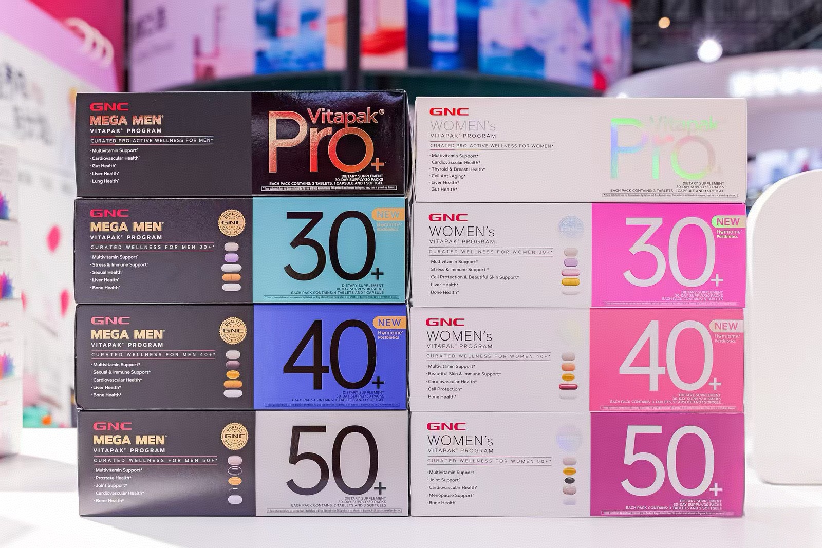 展台工作人员向记者介绍,这次健安喜的产品分年龄定制、20+、30+等一目了然,让消费者很容易根据年龄选择适合的产品,并且针对中国市场的情况,对产品尺寸粒径进行优化,使其更容易吞咽。特别是30+女性营养包,更是针对中国消费者需求量身定制,健安喜通过前期调查显示30岁以上女性焦虑的问题一般是皮肤状态和压力,因此30+女性营养包除了基础维矿和钙这两粒,还特定组合了胶原蛋白片、谷胱甘肽硬胶囊和舒缓压力护眼的茶氨酸和蓝莓提取物片。“可以说,这款产品是第一次GNC中国自主研发,从新品概念、包装设计、生产工厂沟通、质量标准确定、新品上市,第一次全程由中国团队自己主导的产品。”